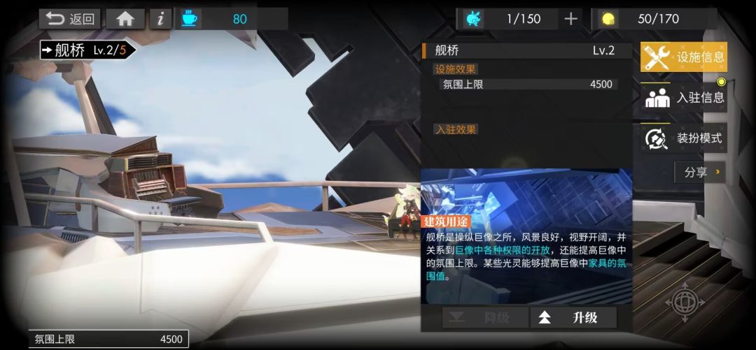 舰桥:舰桥可以提升巨像的氛围上限,我们在主线2-12、4-7、6-14和8-14中收集到中枢插件就可以升级舰桥了。