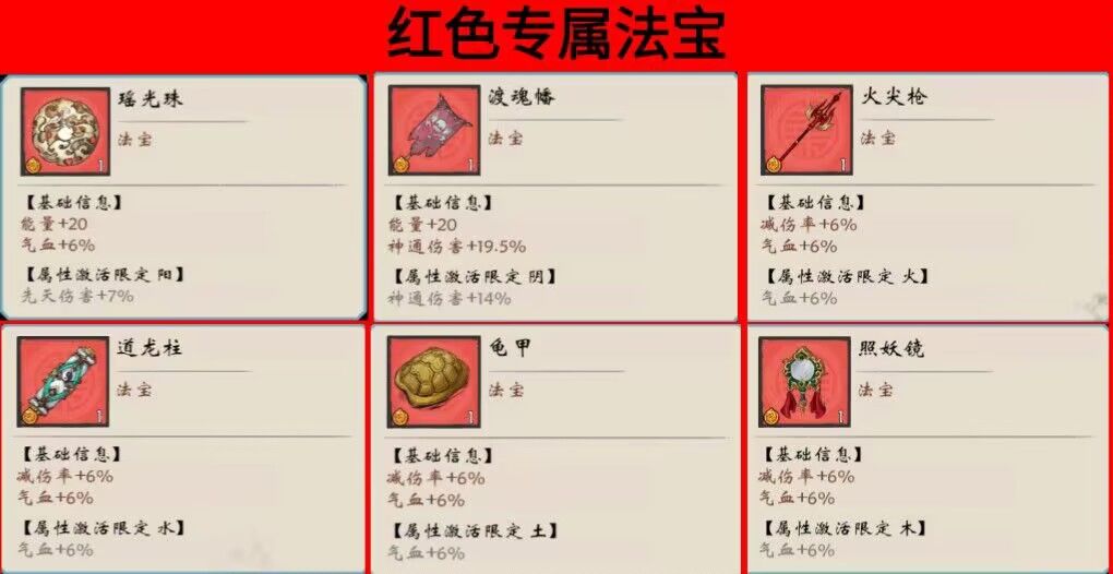 同理优先给主核圣灵,法宝选择根据每个圣灵的定位属性需求选择合适的法宝佩戴。