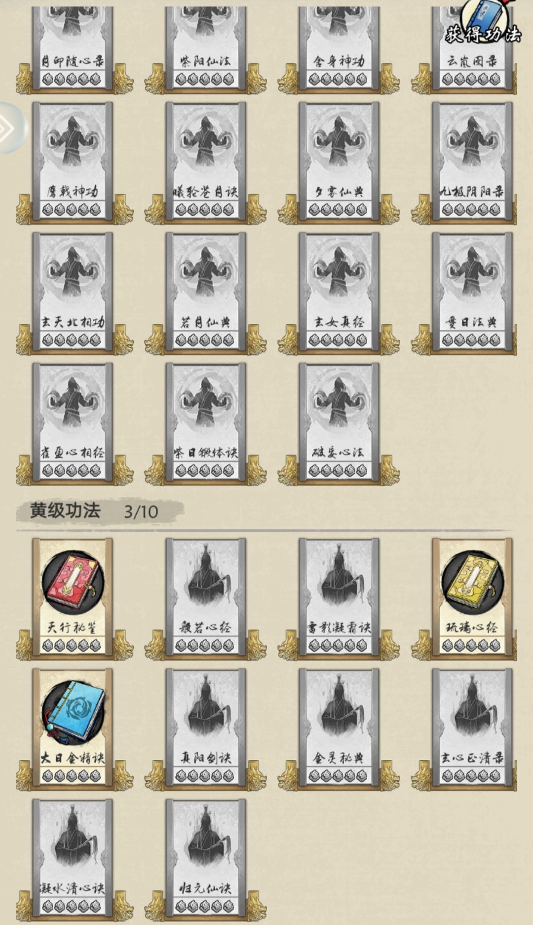 3.功法:通关灵溪洞5后解锁藏经阁与功法,可以前往宗门>>藏经阁使用功法令抽取功法。激活功法并领悟,可提升对应职业圣灵属性。