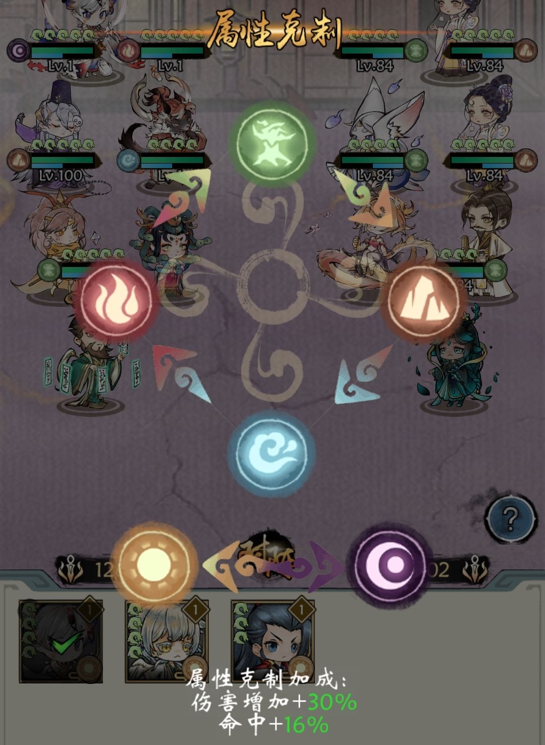属性之间存在克制关系,不同属性圣灵共同出战会触发阵法光环获得不同属性的加成。