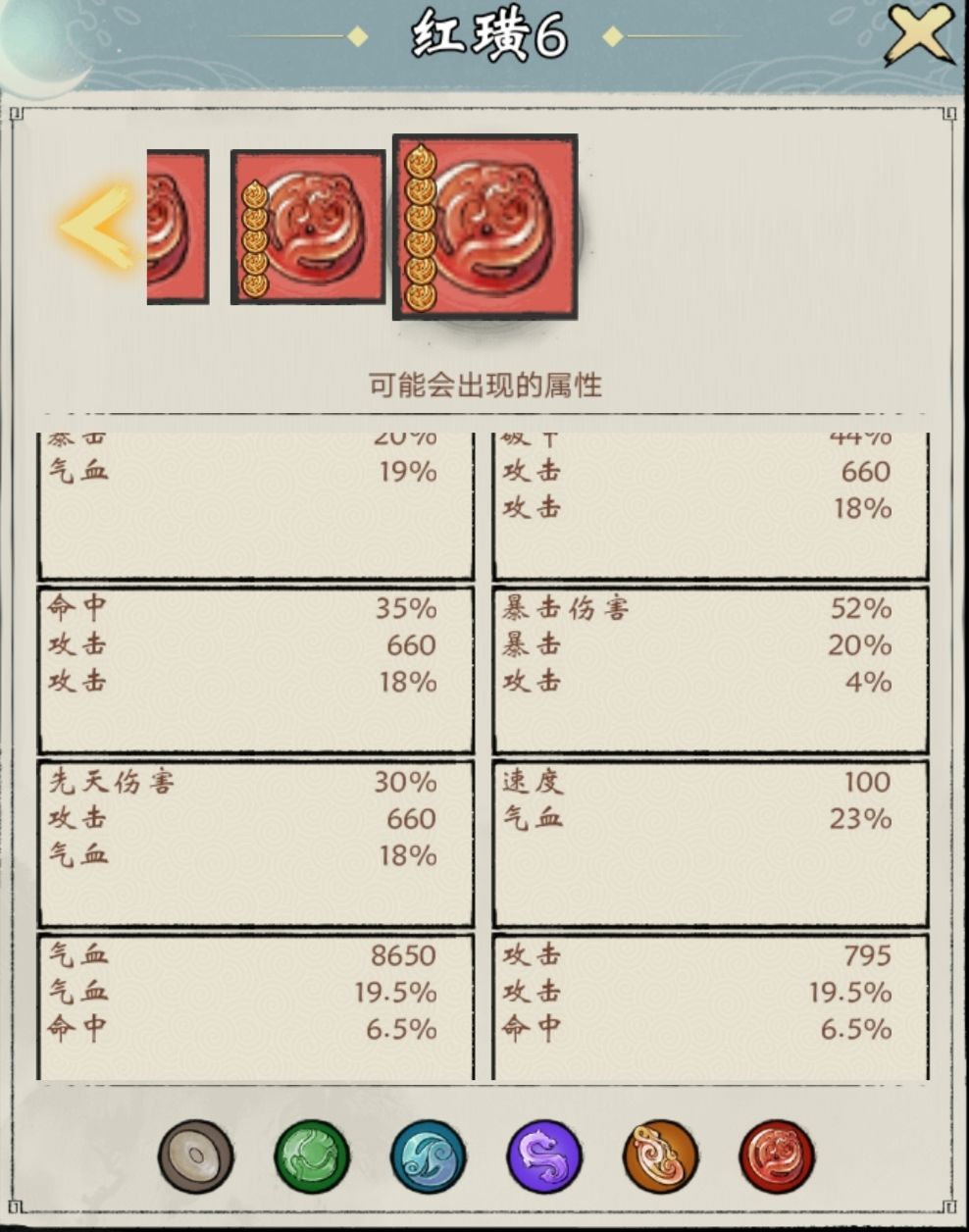 天玑:气血+87.2% 攻击+32% 暴击+20% 格挡+35% 神通伤害+44% 速度+80