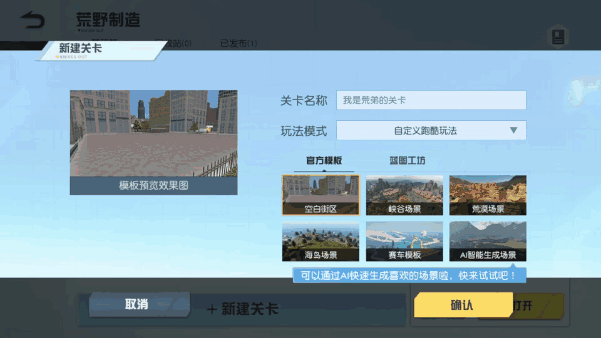 2.蓝图工坊正式开启,现发布地图时支持玩家将自身地图同步至蓝图工坊,玩家在创建地图时,除了选择官方模板外,还可在蓝图工坊选择其他玩家同步至蓝图工坊的地图模板(注:不同玩法模式间引用蓝图专属组件会被剔除)!