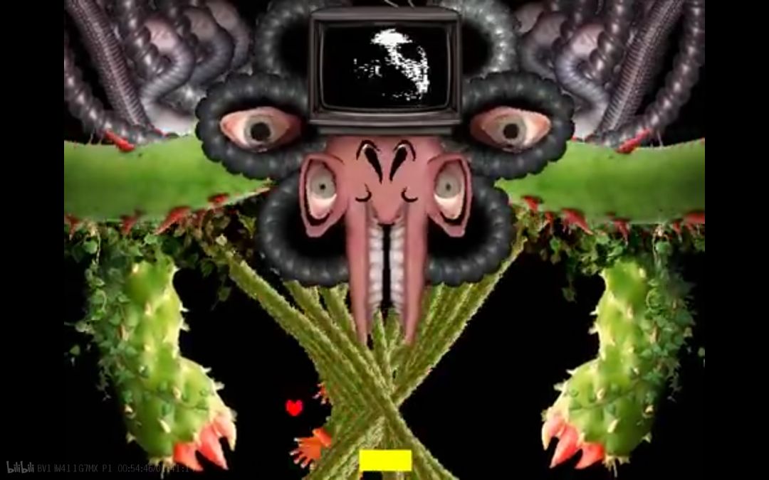 3.精神污染花有着修改游戏的能力,他可以关闭游戏,并且游戏按钮也可以想出就不出,防御力也很高。并且它的攻击方式也是全游戏中最密集,最难躲的,但是并不是最强的。