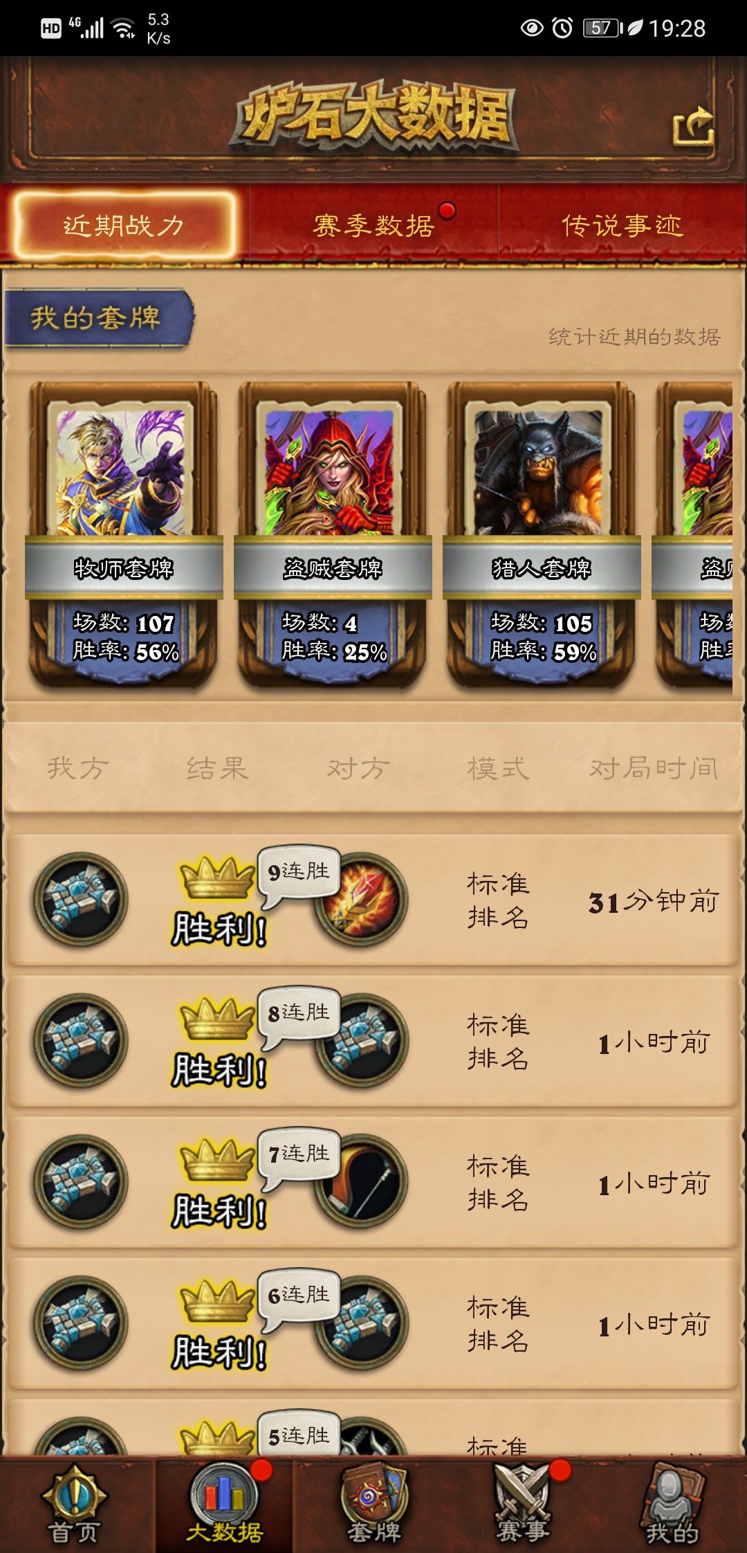 对付阴谋贼和快攻德鲁伊为劣势,奇迹法圣契骑巨化德龙猎大哥战为优势,其它冷门卡组不予评论,内战一般资源比对面厚。