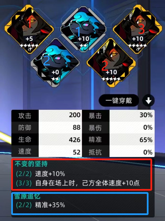 ④输出角色、辅助角色、治疗角色点满精准。(有些输出角色依靠给对方挂上特有的debuff,才能打出高额伤害)。