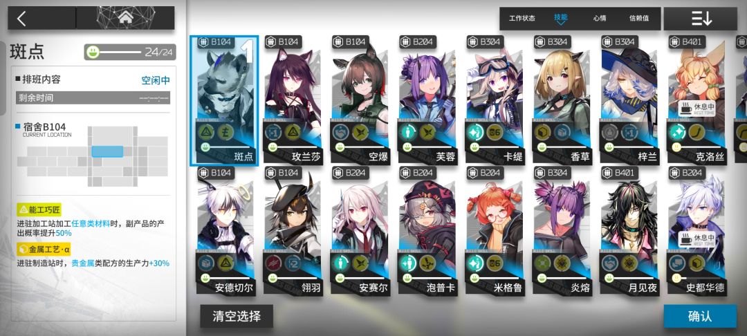 三星干员的基建技能统计