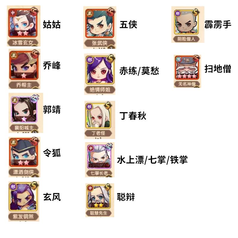 睡杀阵容是姑姑/郭靖/乔峰/丁老怪/玄风/随意挂件(阿朱/聪慧/阴险僧人/绝情都行)