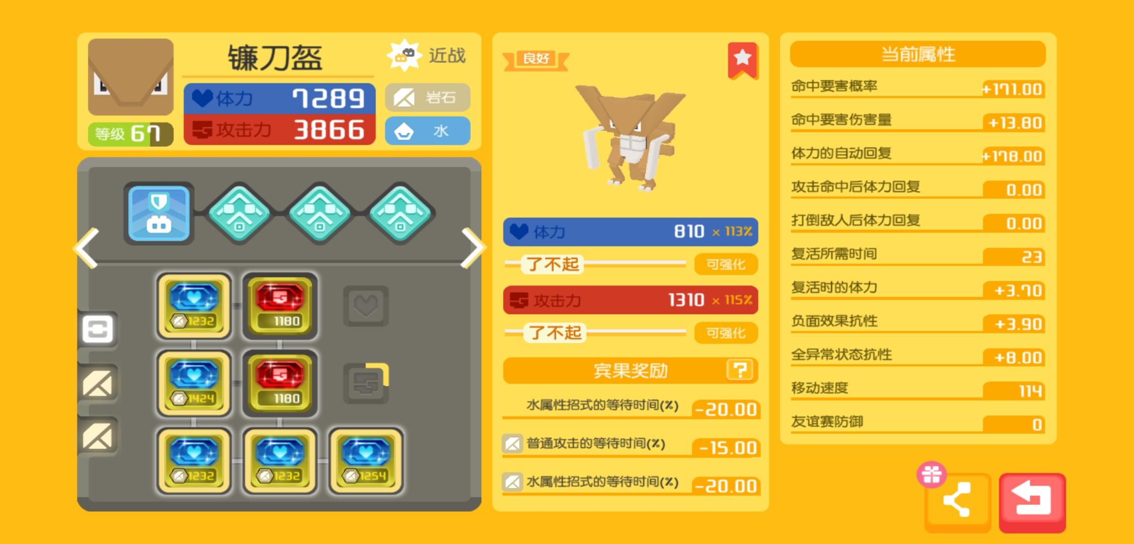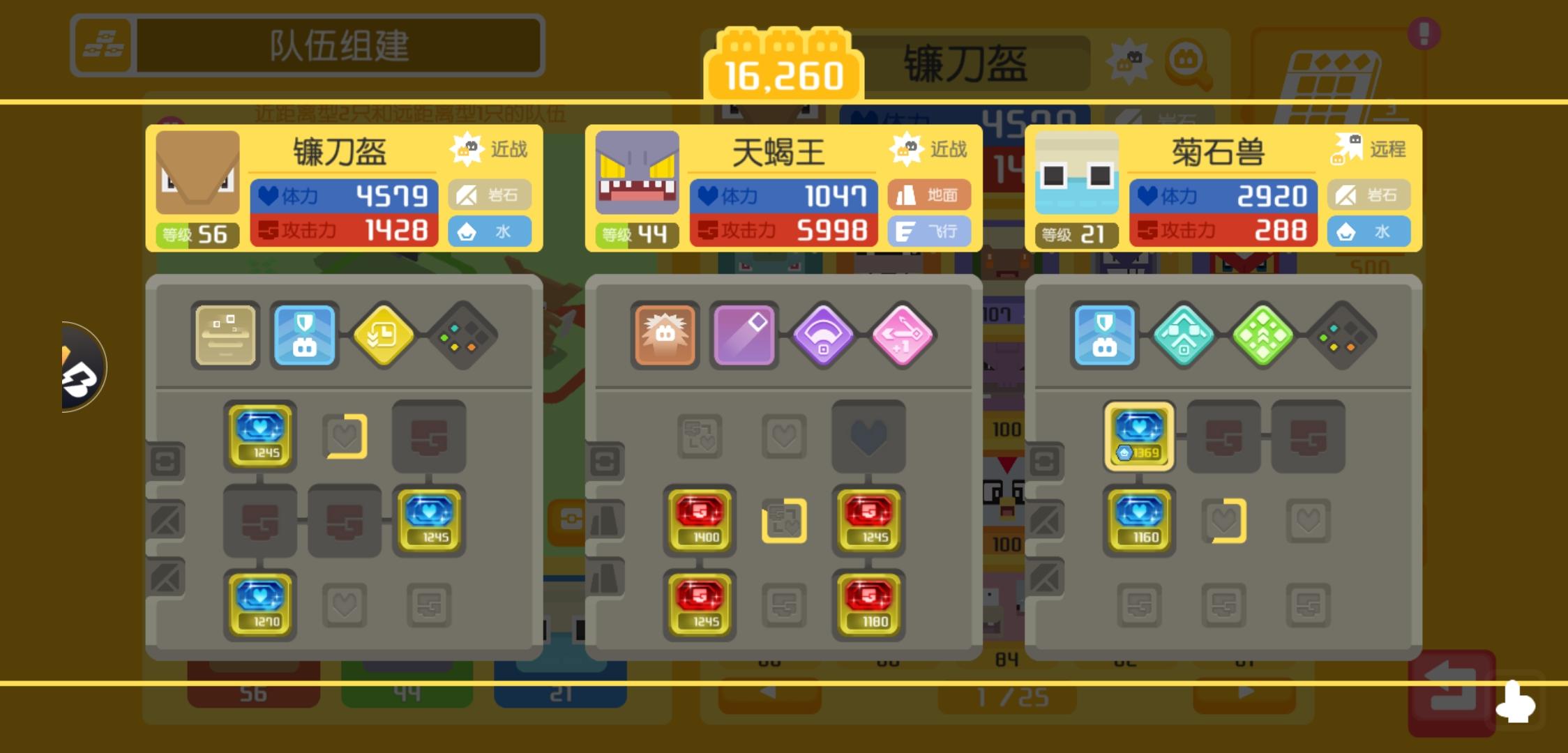 小号没有氪金(有点怕异常抗性下毒失败),勉强凑合用,玩的是缩壳毒针再加上沙暴,带的宝可梦都是免疫沙暴的,大号有宾果和好的方石复活时间很快