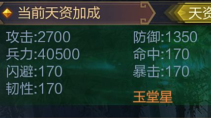 随机抽了个中期子嗣玩家要了他目前玉堂星和月魁星的属性对比面板。