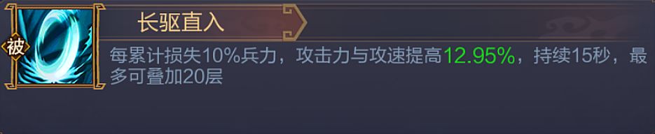 - 为了解决这个问题我们可以从被动入手,学习一些提升自身伤害属性的技能,例如:吕绮玲的「尚武之师」和徐晃的「长驱直入」等,都能大幅提升大招伤害,让群伤收割更稳定。