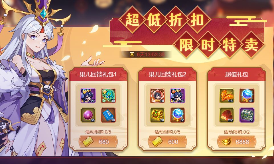 活动内容:活动期间,超值礼包限量折扣出售