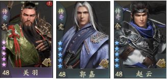 搭配推荐1:武将:【关羽】,文官【郭嘉】,全才【赵云】