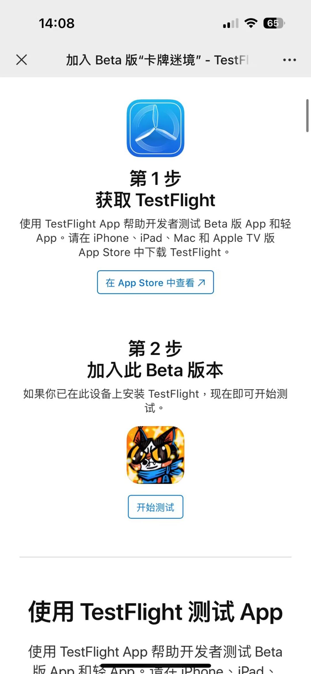1. 点击“参与测试后”将会跳转到Testflight引导页面
