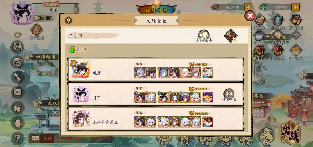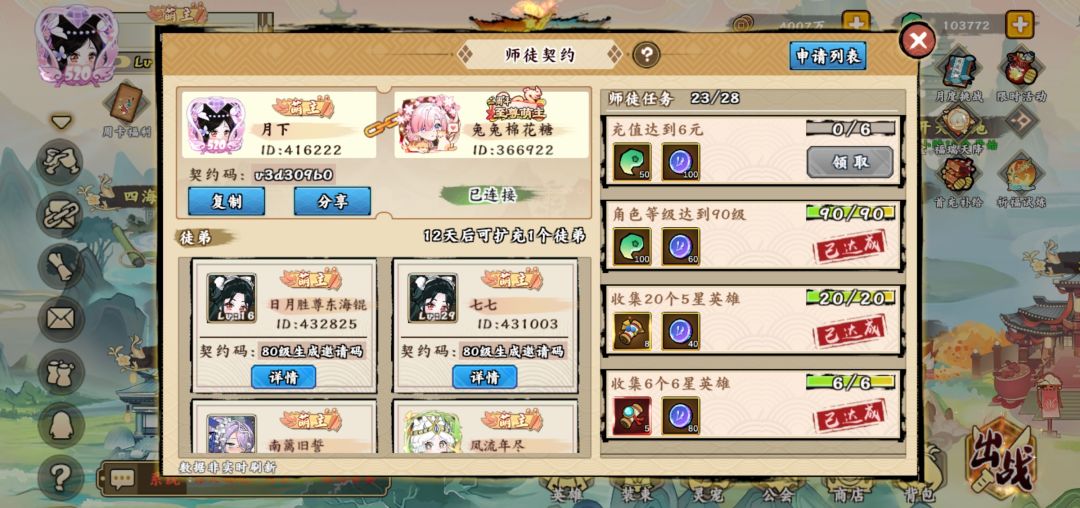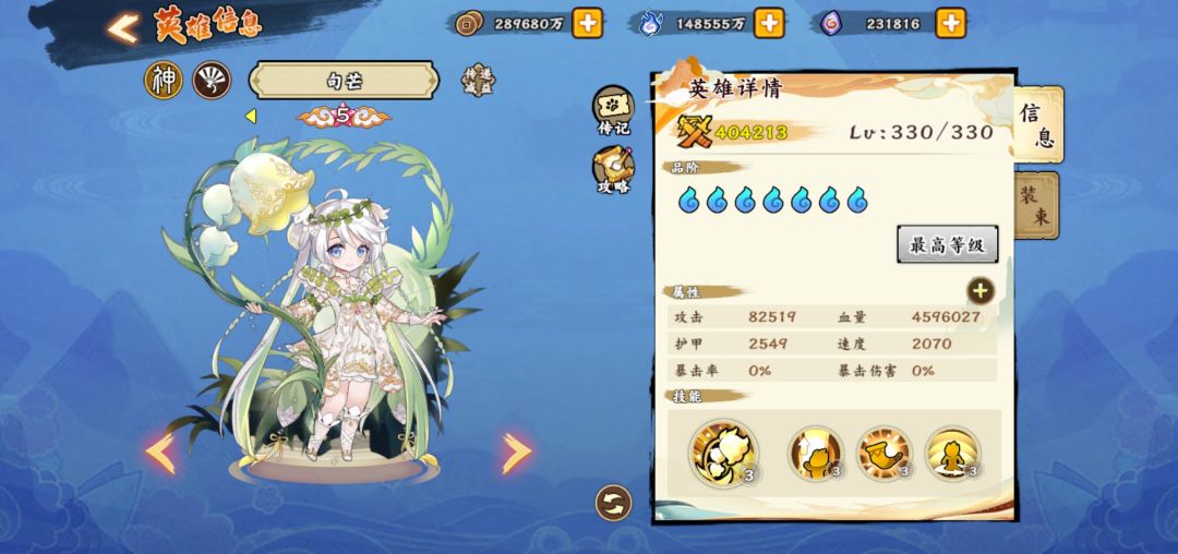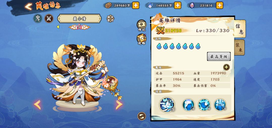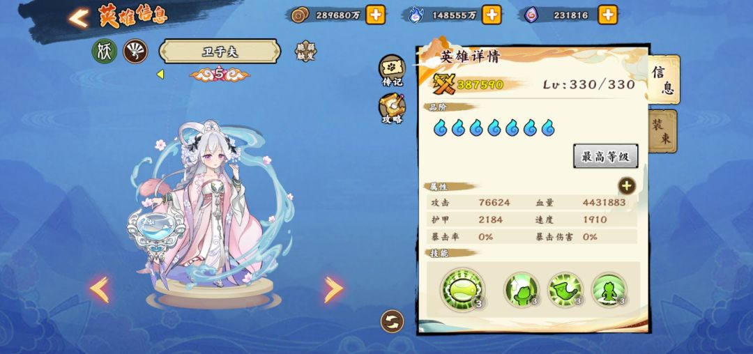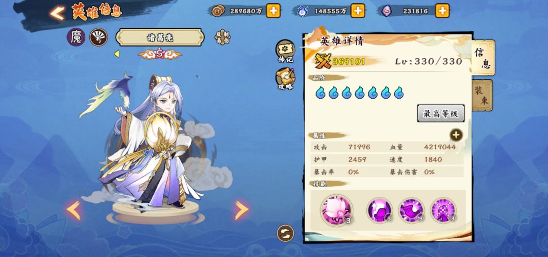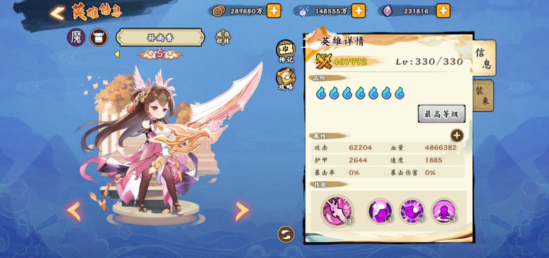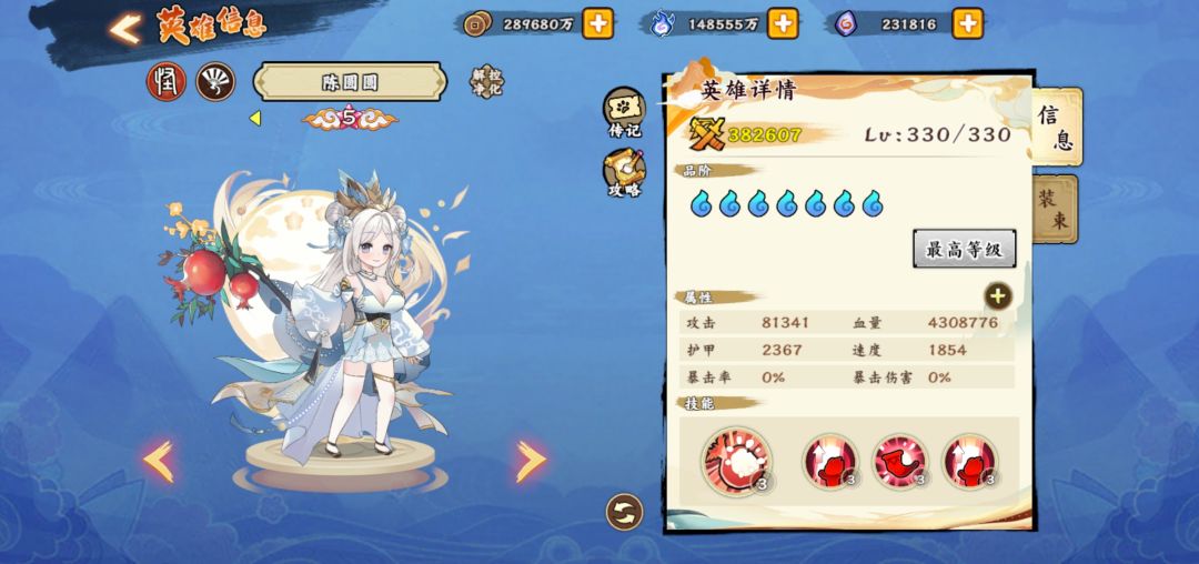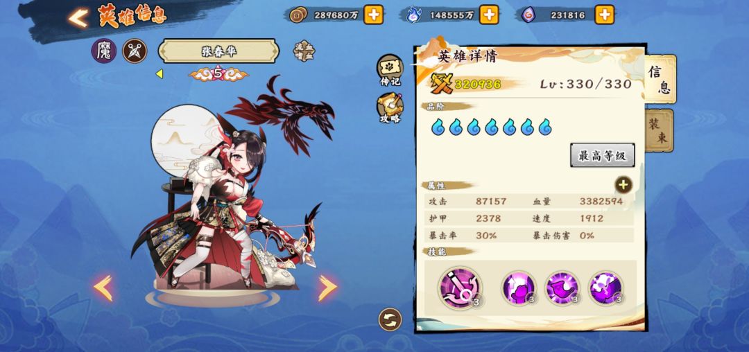 进入正题,白嫖的怼春华,优先觉五,然后做第二个四系英雄,我个人理解优先度:陈圆圆—诸葛亮—孙尚香—卫子夫—聂小倩,上述六个角色就是目前平民最好的四系队伍,然后你拉起来一队觉五以后,可以攒资源搞神禅,虽然很慢而且效果不怎么显著。