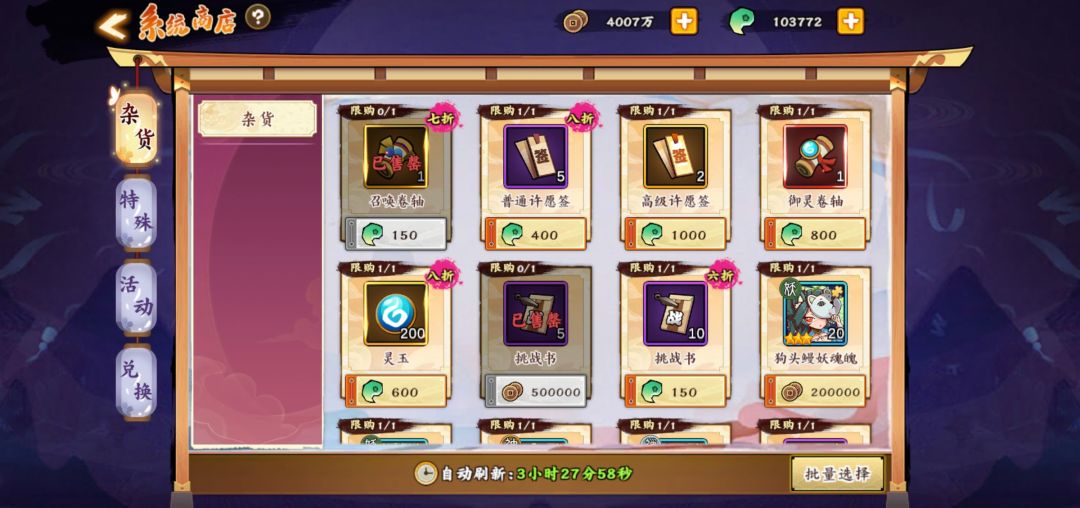 太虚幻境里面的商店,1250勾玉十个券,750五个券