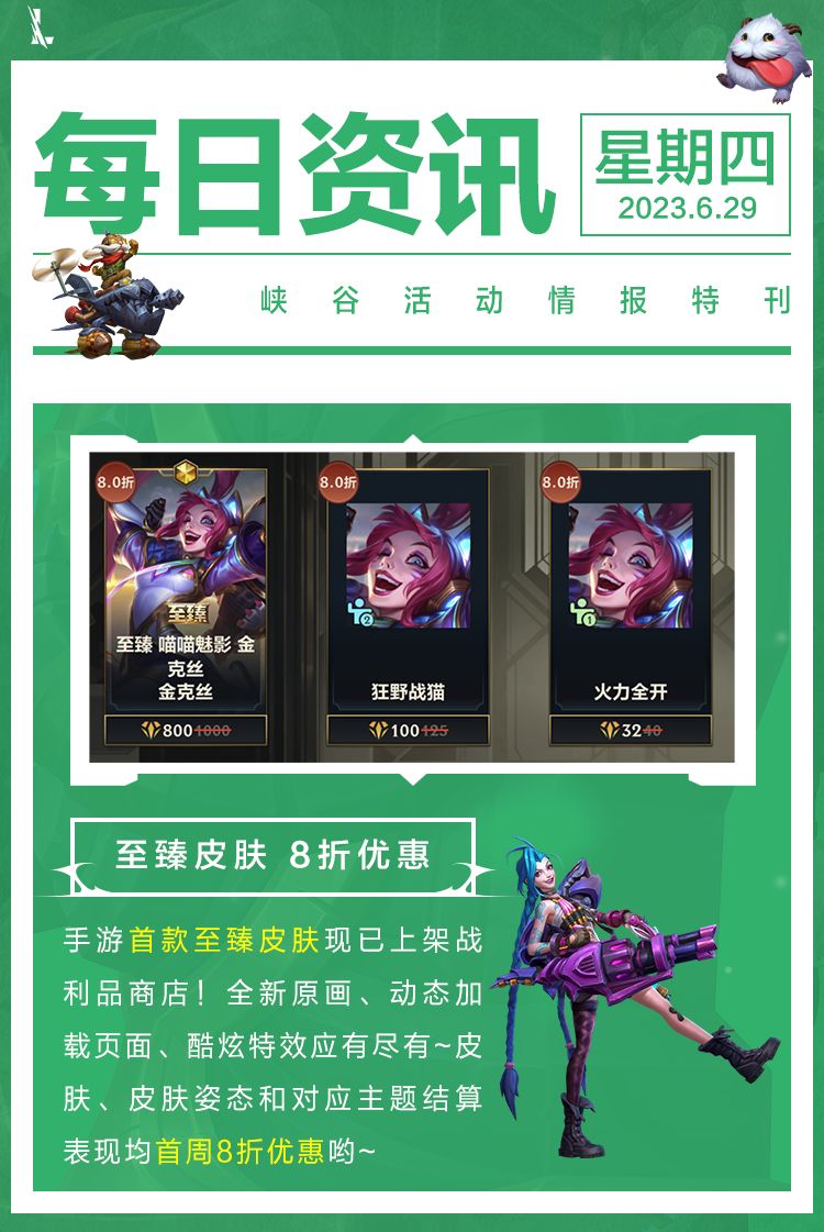 此外,包括至臻皮肤在内,皮肤姿态、边框和主题结算表现全部首周8折优惠!现在就是前去兑换这些新道具的最佳时刻哟~