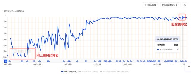 《蛋仔派对》于6月16日开启了它的一周年庆典,再次来到iOS畅销榜第三的位置。可能很多人都没有想到,这款上线初期成绩平平的游戏能在半年后持续保持在畅销榜前十。