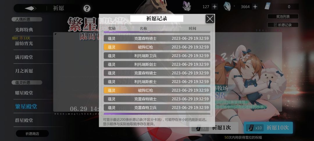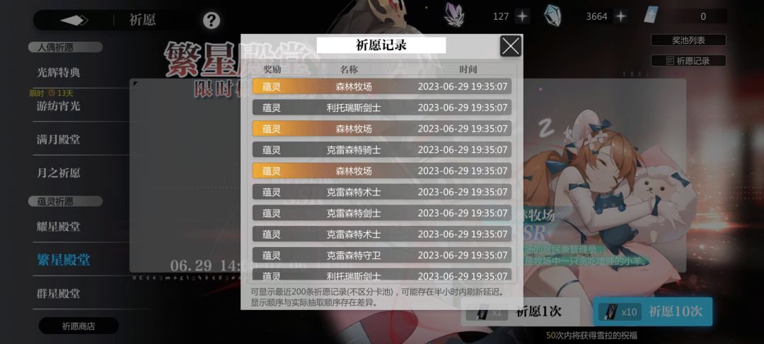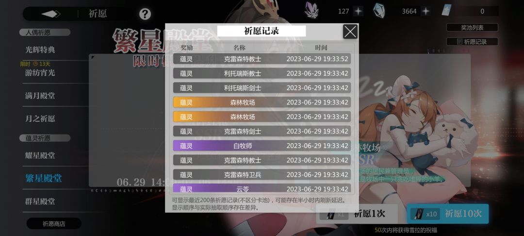 但是大脸收买了我,我忍住了,这波两个十连直接把牧场整五星去了,总共才小抽了不到一百。就是抽克洛托狂歪,一百抽就一个,也许这就是补偿叭。