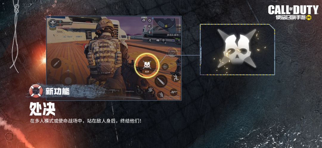 游戏即将上线处决功能。上线后,战士们可以在多人对战模式和使命战场模式中,悄悄潜入至敌人身后,以最帅的方式淘汰对方,享受胜利的快意。