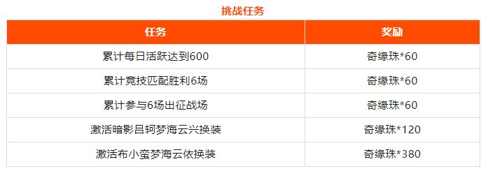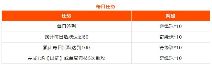 大家可以完成每日任务和挑战任务获得奇缘珠。