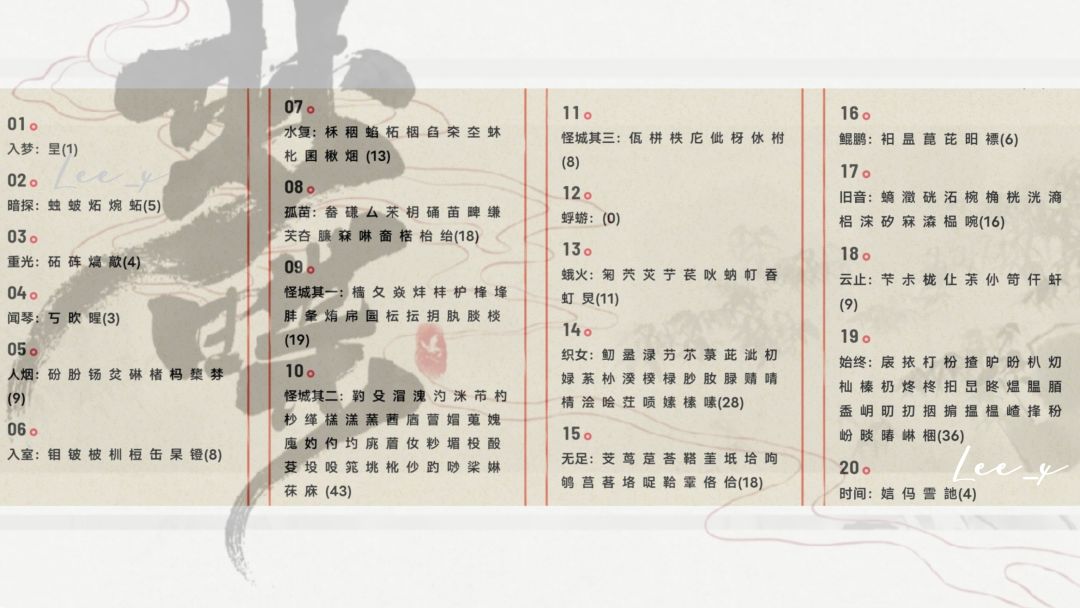 第二轮生僻字收集已经完成,当前共计收集259个,这估计是目前网上最全的生僻字收集了吧