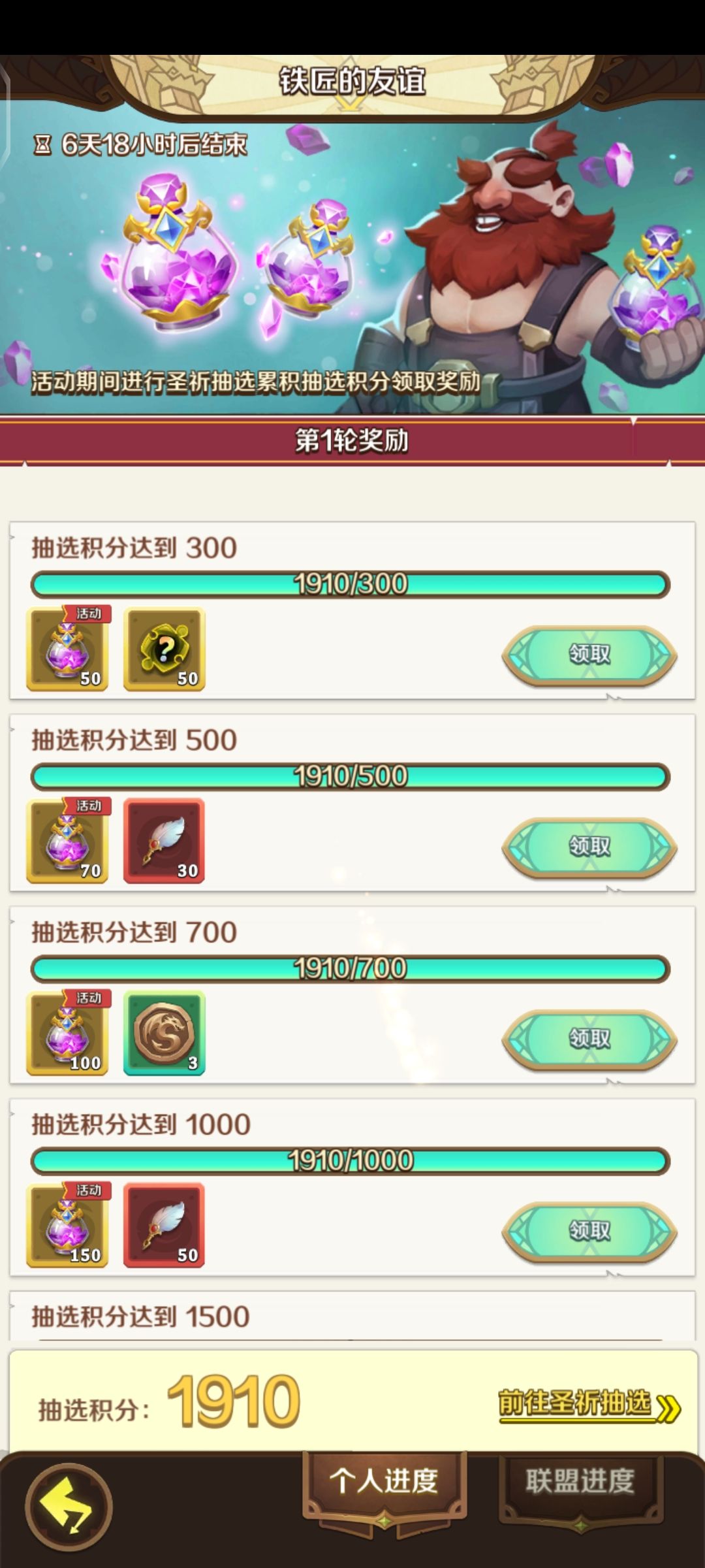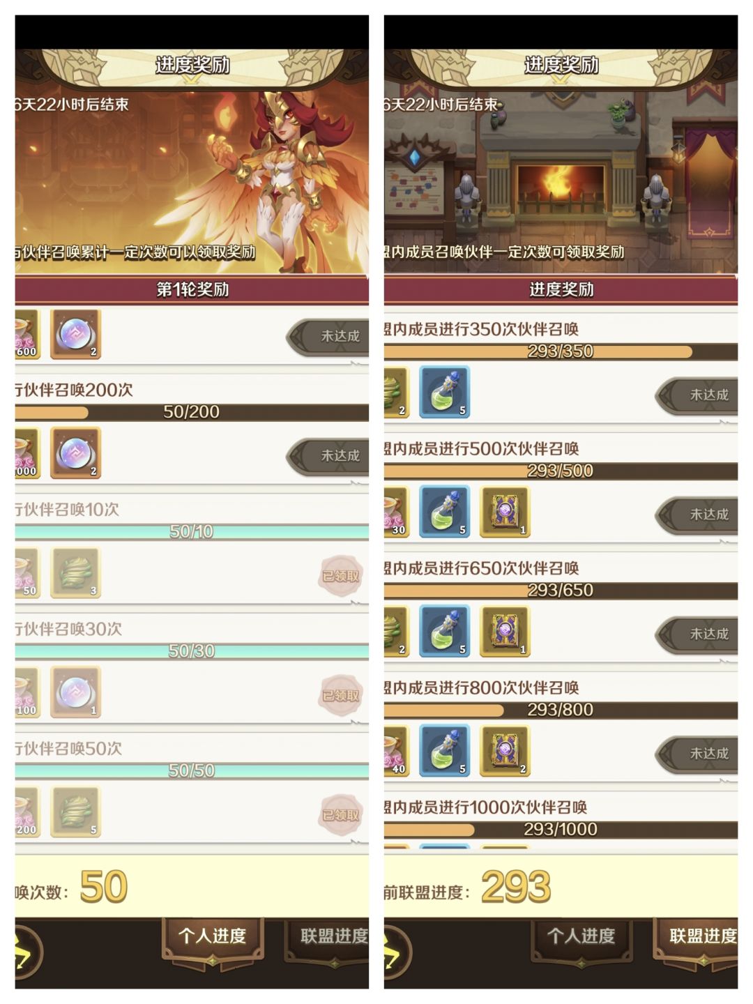 这里我们一共可获得50(个人进度)+100(联盟进度)=150货币