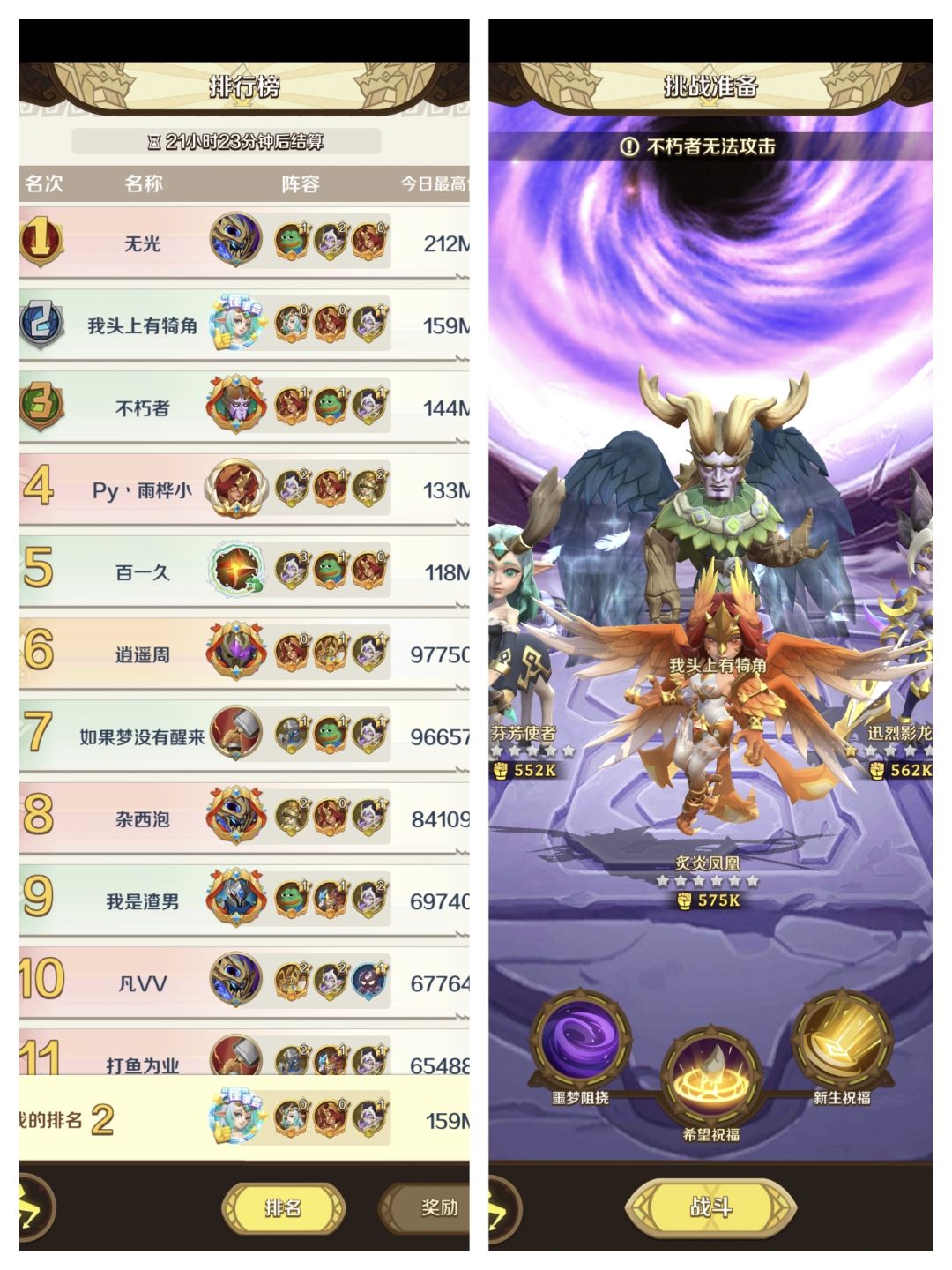 在本次的活动PVE(梦魇挑战)中,推荐的阵容为小鹿、凤凰、影龙,其中把最好的输出技能给凤凰佩戴(虽然我不知道第一如何打的这么高分,但我没有青蛙我也测试不了hhh所以默认没有青蛙的阵容推荐