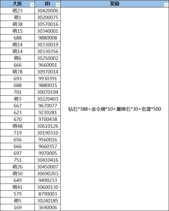 (钻石*388+金令牌*10+重铸石*30+名望*500)*30份。