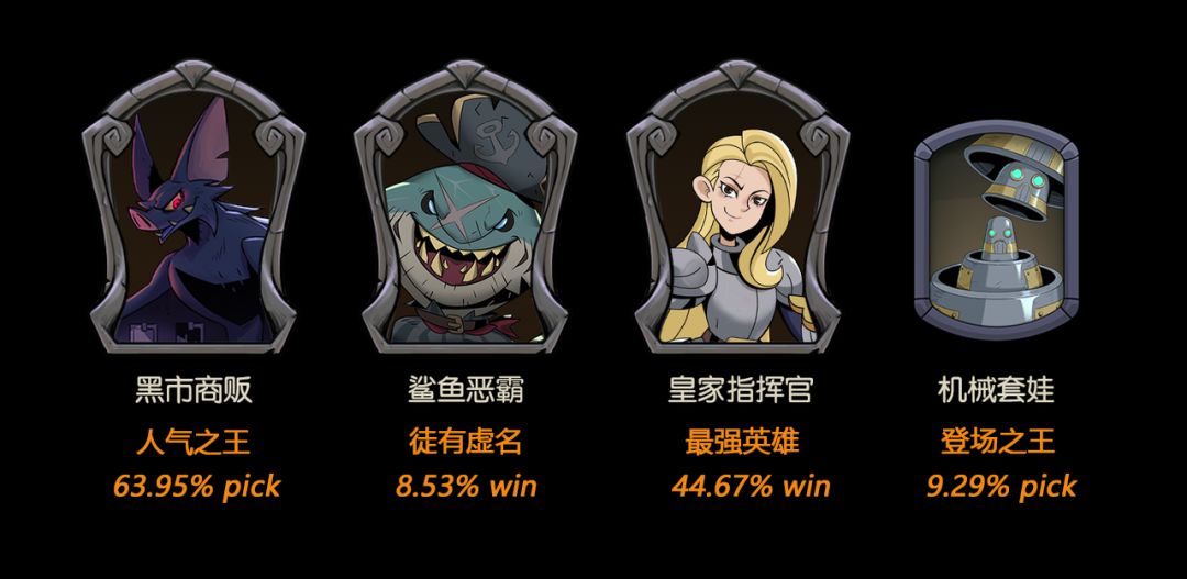 #鲨鱼恶霸是吃鸡率最低的英雄,只有8.53%,看来恶霸的头衔是徒有虚名