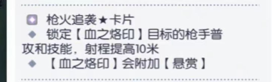 这卡直接提高了射程以及,同时上了两个dbuff,让狙击不是用鹰眼就能在20米开外打伤害