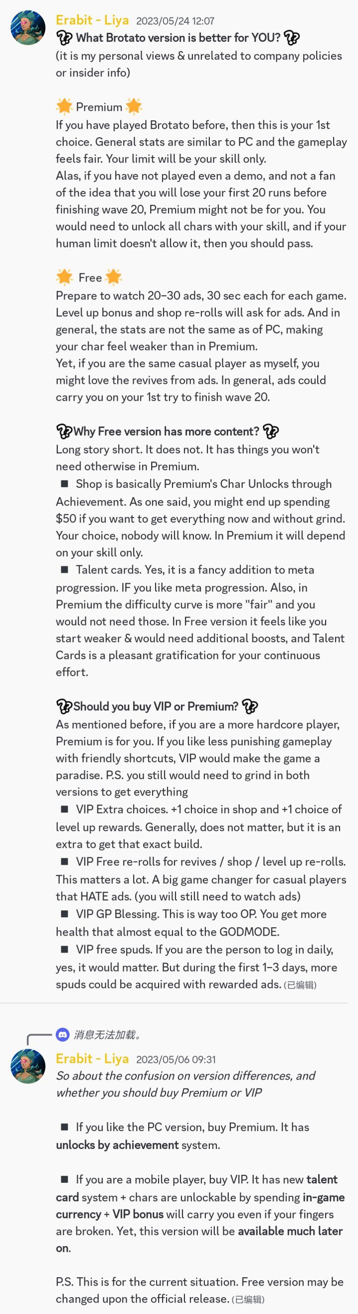 官方手游有两个版本,免费版和付费版,免费版是广告加内购,有天赋卡,角色用土豆币买,付费版买断,和steam一样,目前更新了无尽模式,和steam还是差了一个版本,两个版本具体的区别看下图