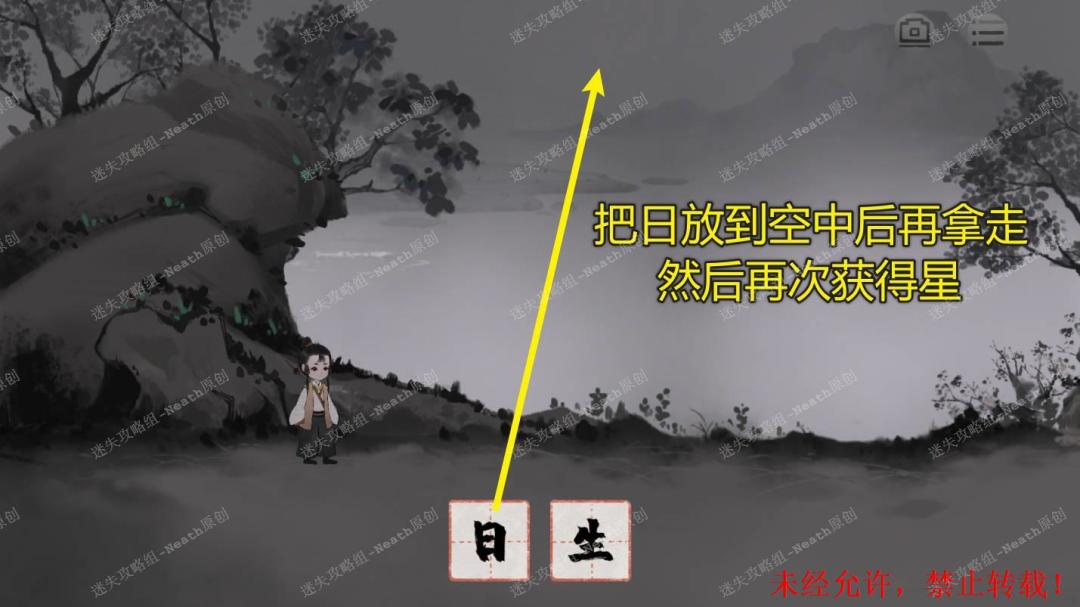 106、在闻琴关卡中,获得【星】,拆分成【日】,把【日】挂在空中,获得【日】,再获得【星】,拆分【星】,挂【日】,不断重复直到有十个【日】。106 106.1