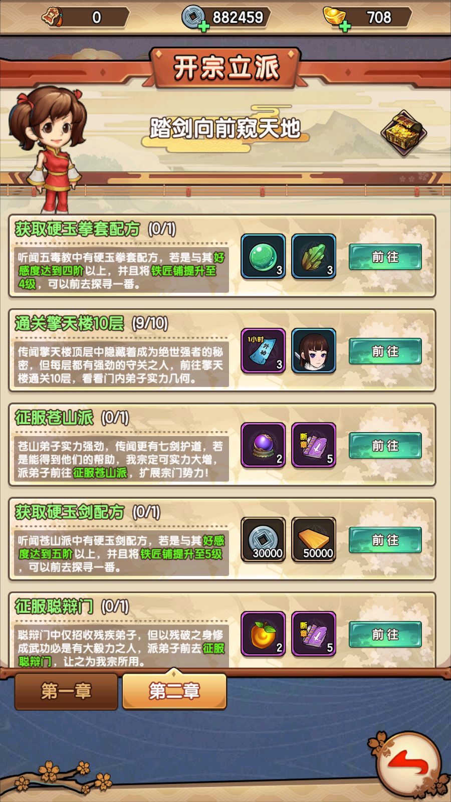 8、开宗立派:通过完成任务获取建设宗门的相应资源,是游戏资源获取的主要途径之一。