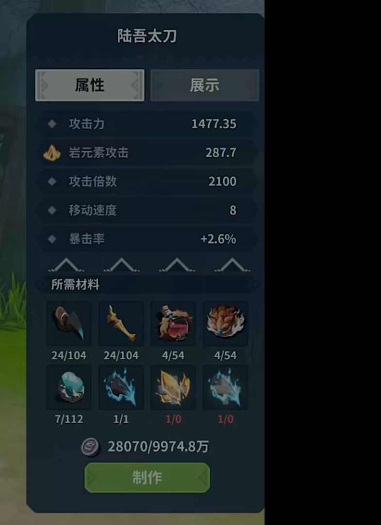 官方视频省略了最后一个材料的属性,不过也不难猜属性大概是攻击加暴击