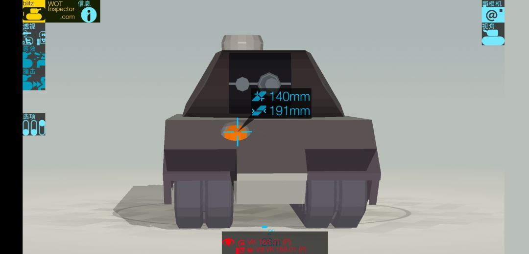 25度仰角配上身高,所有想灌顶16801的坦克都要思考一下自己一发换回来一枚128甚至被HE贯穿底盘-600值不值。但是8度俯角却因为过于庞大的身高显得特别的不够用(被SPIC贴侧折磨死是日常,当然E25也在恐惧范围内),所以每一位16801车长都会十分惧怕对面低海拔车辆(ELC狂喜)。