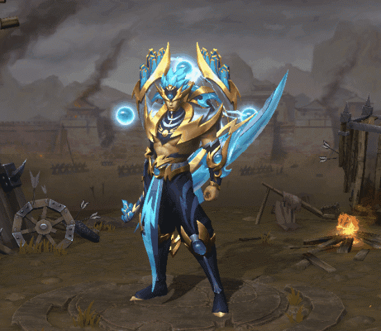“其疾如风”与夏侯渊的特征较为契合(主属性敏捷,大招鬼界穿梭),在换装设计上运用多种“风”相关的元素,武器特效上也设计出能够体现风的动态效果,呈现一个迅疾如风的鬼将形象。