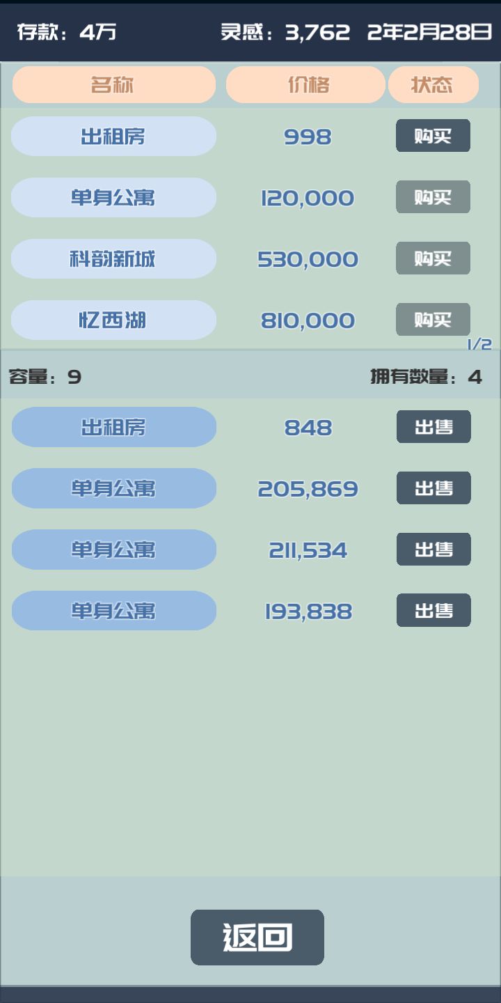 玩了一会就是钱有点麻烦前期,有了12万就可以直接买房子然后等他升值,然后就有钱去旅游灵感也有了