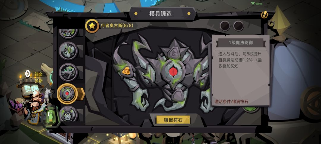 三模具效果一言难尽,吉鲁最后一个符文镶嵌是暴击符石,等后续开放第二模具栏,勉强能用。