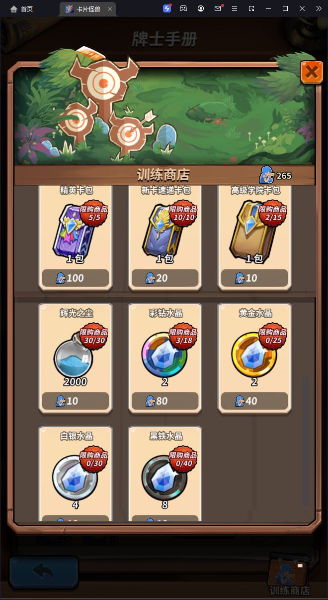 然后我们打开训练手册,把训练币领取一下,然后打开商店优先换取每日限购的粉尘和永久限购的每日粉尘。以达到快速升级