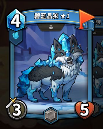 拿碧蓝晶狼举例,左上角4水晶是放置卡牌需要的水晶消耗,左下角3点近战攻击为物理攻击,右下角为5点血量。如下图: