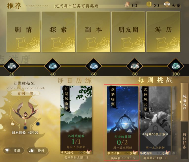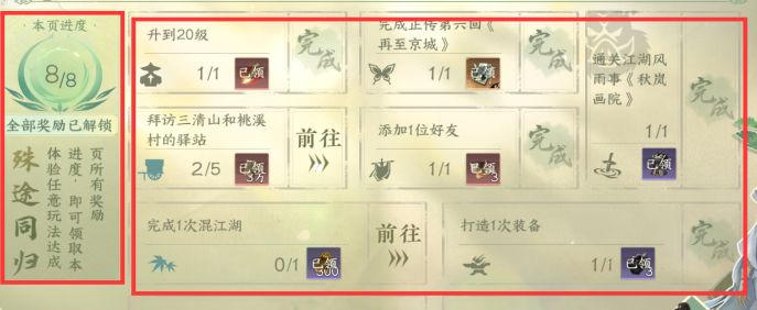 江湖笔记:完成8个任务可以解锁第一天所有奖励,选择自己好做的就好!