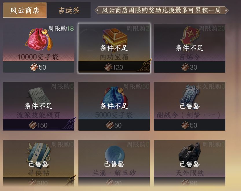 风云商店每周除了交子需要全部拿下,这周刷不够的可以考虑打打PVP!