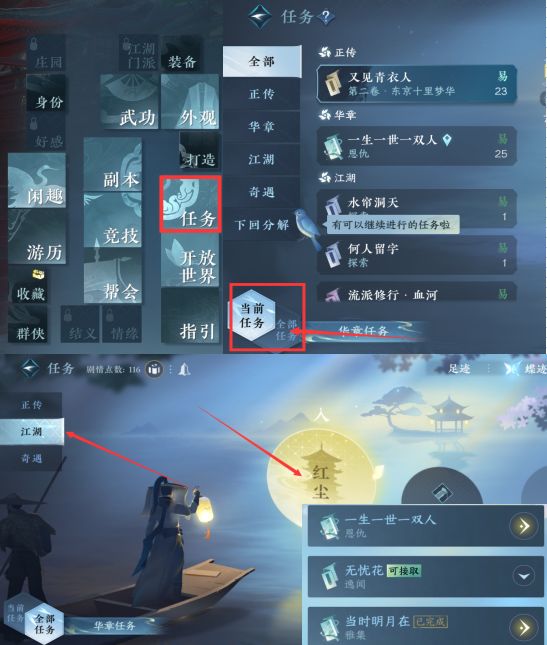 新手任务:也就是新手主线,完成到没有主线为准,也就是出现未完待续的时候,就可以开始下一步了。