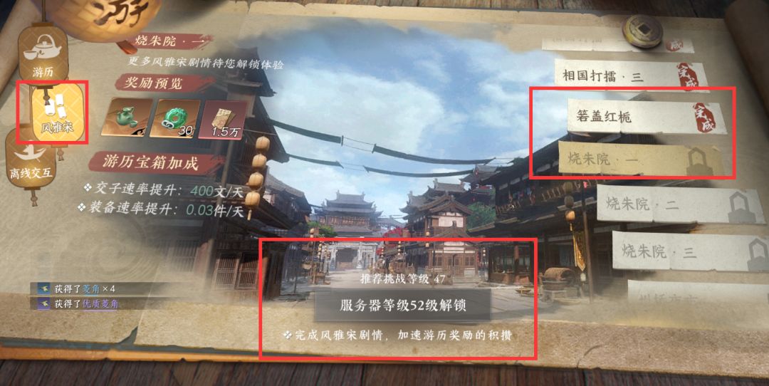 同时今天等级升级到上限的时候,大家记得把风雅宋的最新关卡通关哦~