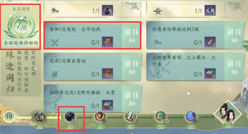 今天的江湖笔记也很简单,大家完成一些容易完成的就好,比如一场公平论武,身份达到2级!