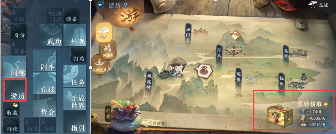 上线第一件事情就是领取游历奖励哦~