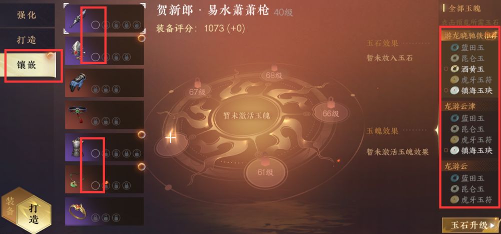 同时开启了四件装备的玉石镶嵌,根据右边推荐的镶嵌就好!