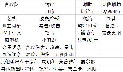 核心输出:高暴芯核、高属性原型机小丑2星以上、输出角色