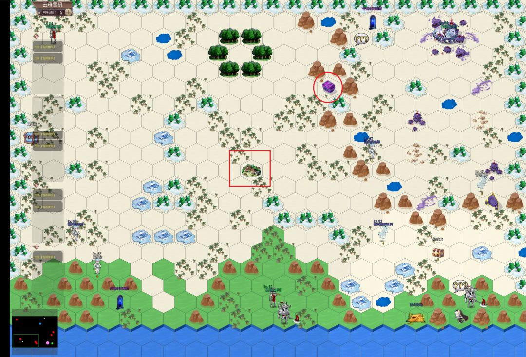 接触问号触发剧情后,两只任务怪会出现在地图上,击败两只任务怪后结束回合,雪原之王会出现在地图上。