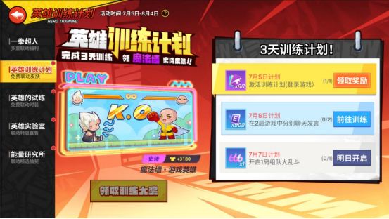 哼哼~完成在DMM世界量身定制的三日训练计划,不仅能获得大量点券及其他道具奖励,更能直接解锁电视动画《一拳超人》联动魔法墙奖励啦!